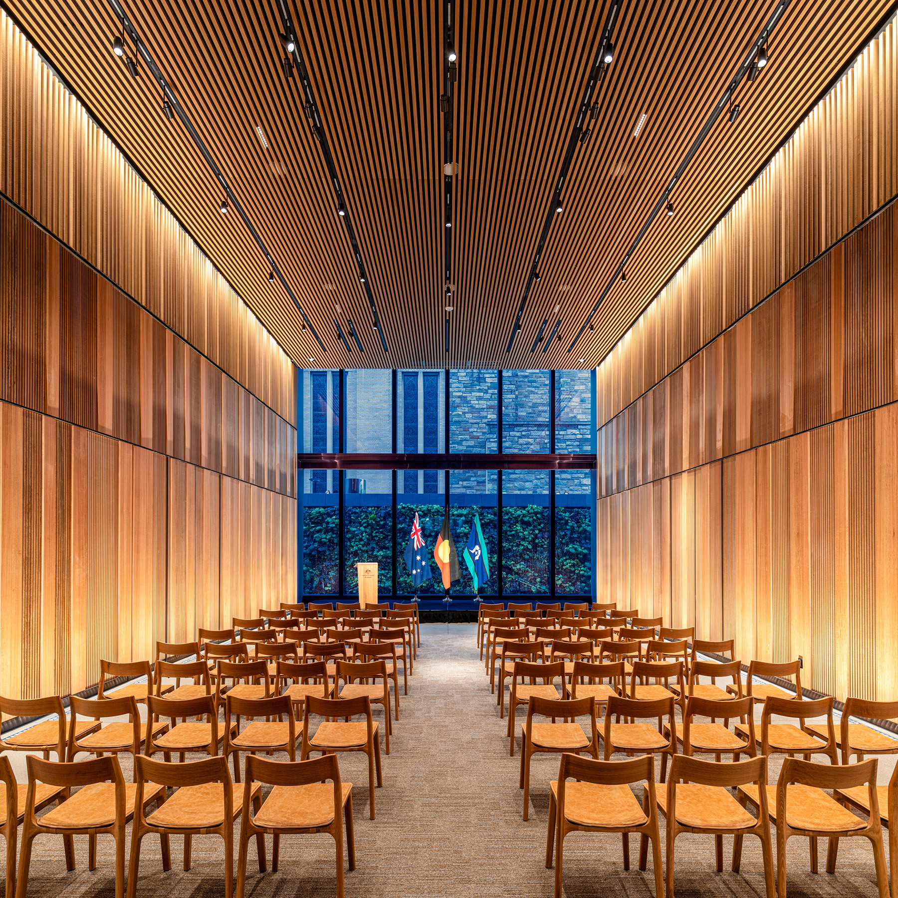 Prominently located on Scott Circle, the new Embassy replaces its longtime predecessor with a six-story building that reflects Australia’s values of openness, sustainability, and inclusivity. Realized as a design collaboration between KCCT as architect of record and Bates Smart as lead designer, the Embassy blends natural materials, high-performance systems, and culturally significant public spaces to project a welcoming, future-forward diplomatic presence in the heart of Washington, DC.